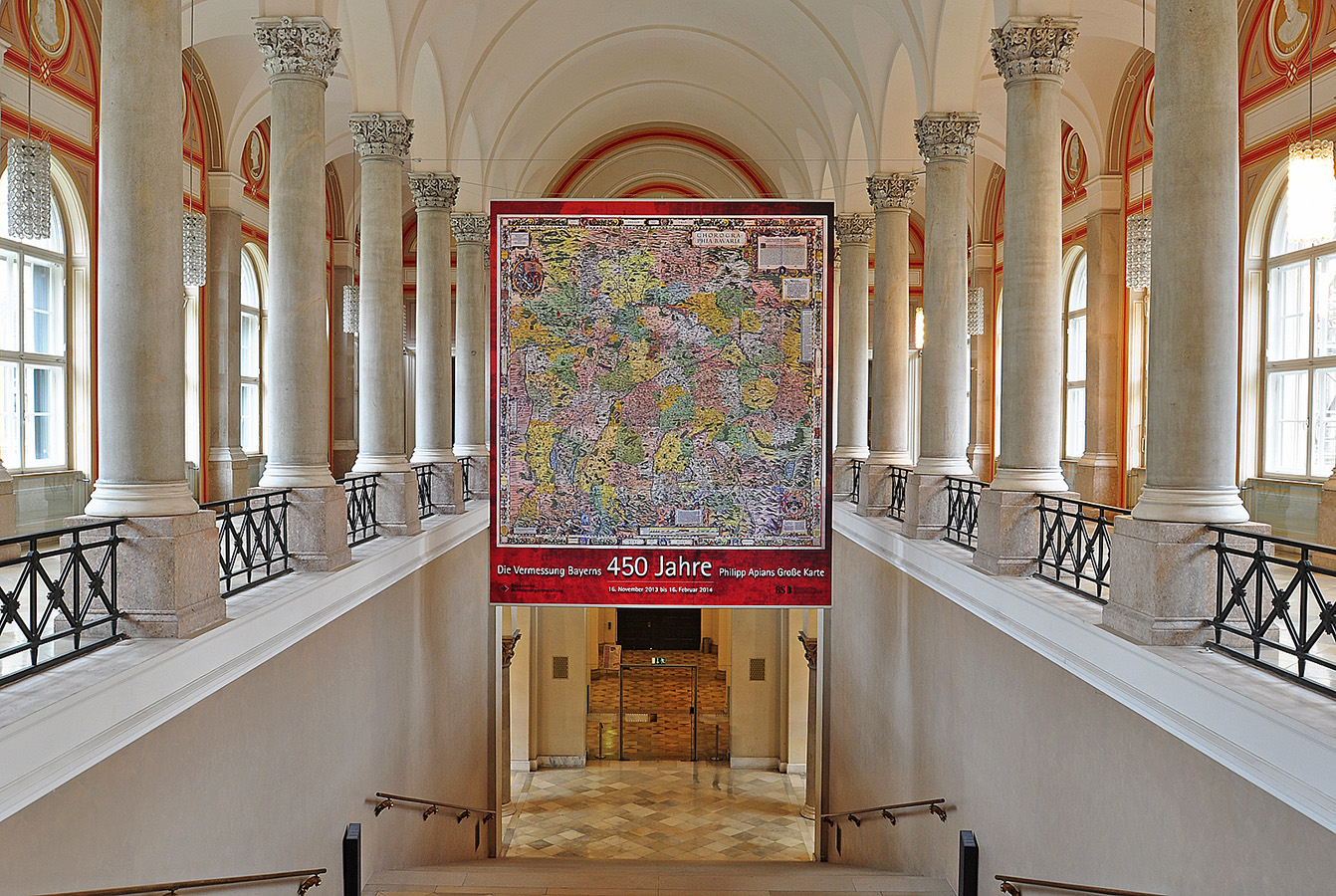 Die Ausstellung der Bayrischen Vermessungsverwaltung in Zusammenarbeit mit der Bayrischen Staatsbibliothek erinnert an Apians Pioniertat und zeigt, wie es danach weiterging: vom “Topographischen Atlas des Königreiches Bayern“ bis zum BayernAtlas.